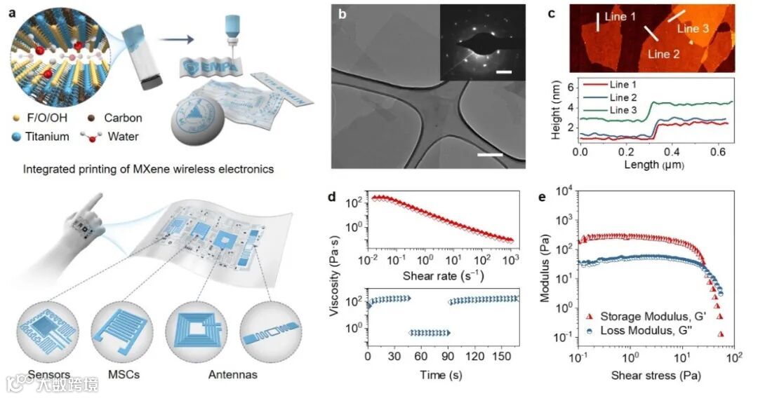 MXene水性油墨室温高精度直接打印柔性无线电子器件