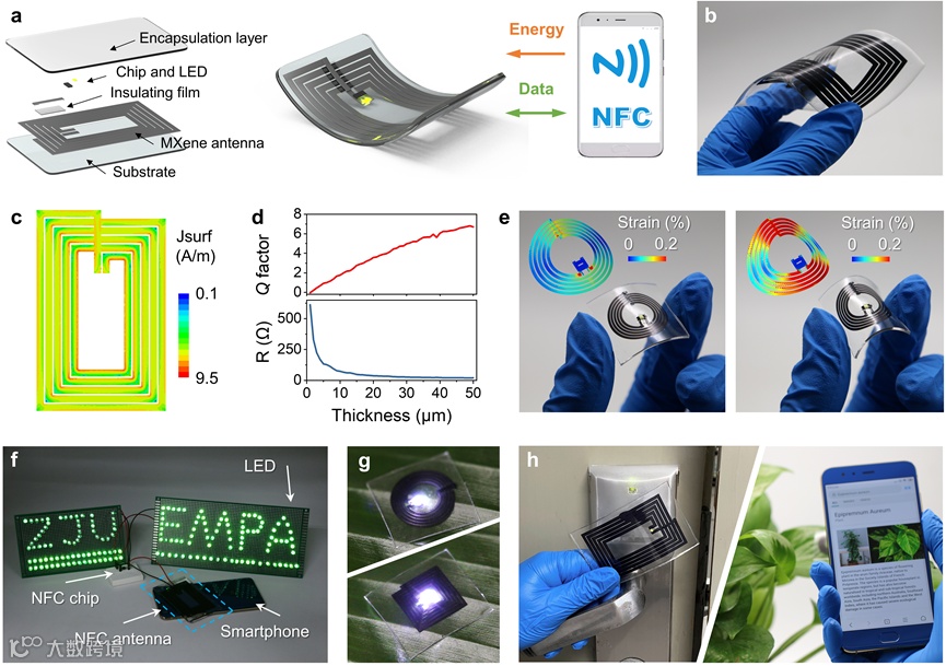 图3 MXene墨汁打印的近场通讯器件。