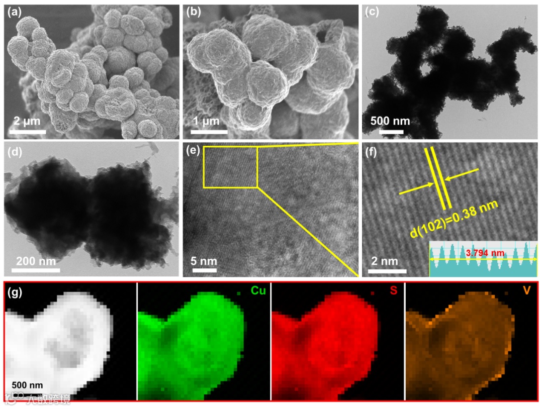 图1. Cu3VS4的形貌结构表征