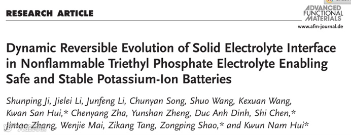 在不燃的TEP电解液中发现动态可逆的硫基SEI助力钾离子电池更好的循环稳定性和安全性