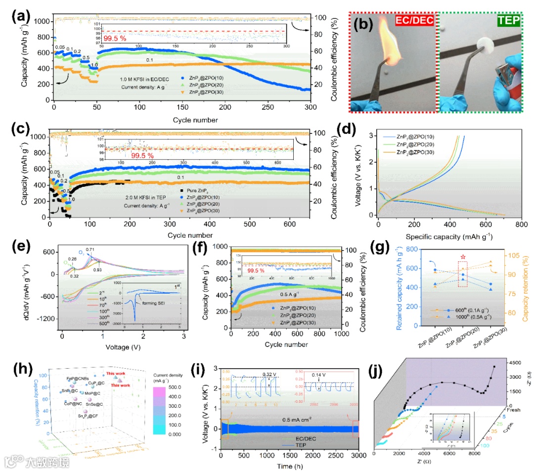 要点二:磷化锌负极在TEP电解液中表现出高容量和高循环稳定性