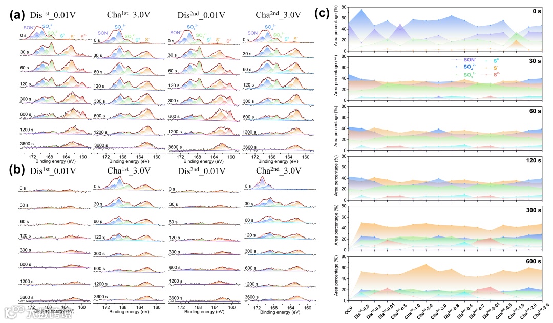 要点三:XPS发现动态可逆的含硫SEI在TEP电解液中的演变
