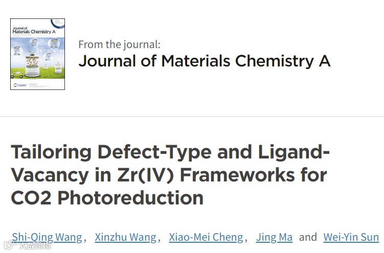 基于此,南京大学的孙为银教授与马晶教授合作,在国际知名期刊Journal of Materials Chemistry A上发表题为“Tailoring Defect-Type and Ligand-Vacancy in Zr(IV) Frameworks for CO2 Photoreduction”的文章。该文章研究了UiO-66缺陷种类和配体空位程度对光催化活性的影响。