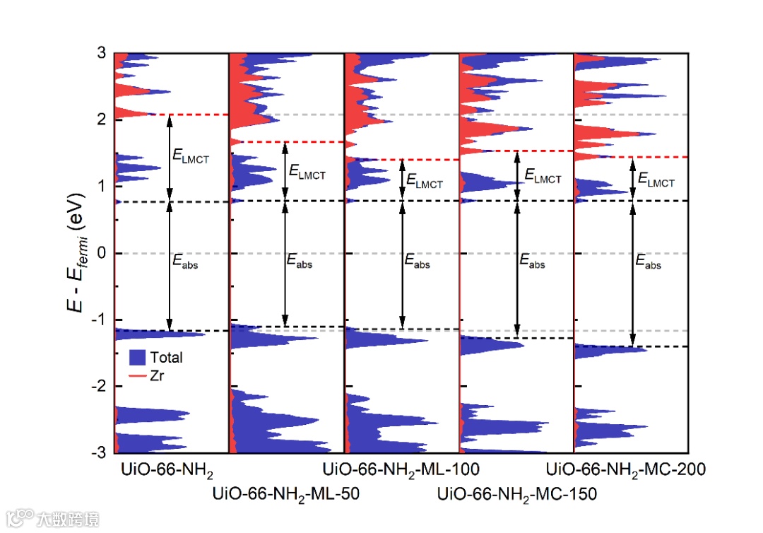 另外,光催化过程中涉及两部分能垒:配体吸收光(Eabs)和将光生电子转移至金属未占据d轨道(ELMCT)所需要的能量。缺失配体或团簇时会暴露不同程度的金属位点,改变反应能垒,影响光催化性能。然而,关于UiO-66中缺陷种类和配体空位程度对光催化性能影响的研究仍处于起步阶段。