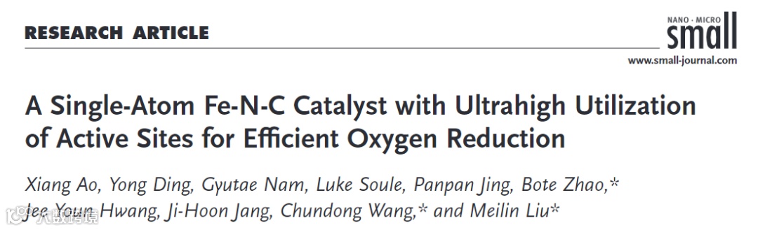 基于此,来自华中科技大学的王春栋副教授与佐治亚理工学院的刘美林教授合作,在国际知名期刊Small上发表了题为“A Single-Atom Fe-N-C Catalyst with Ultrahigh Utilization of Active Sites for Efficient Oxygen Reduction”的研究论文。