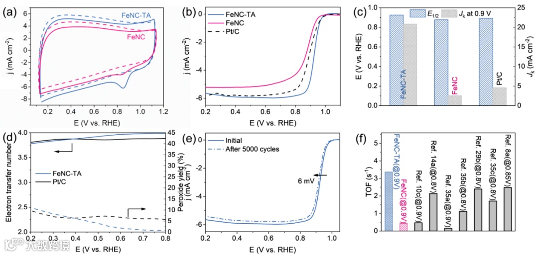 图4. FeNC-TA催化剂的氧还原催化性能。