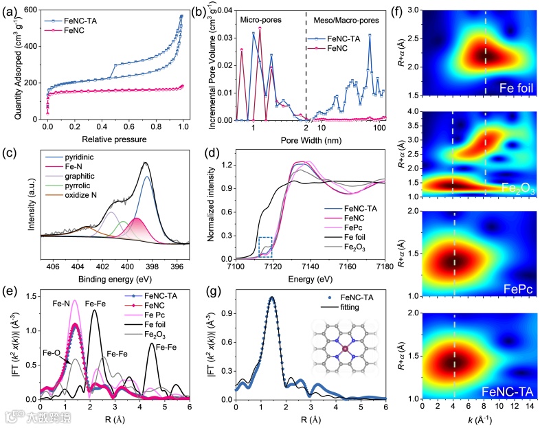 图3. FeNC-TA催化剂孔道结构及Fe原子的局域环境表征。