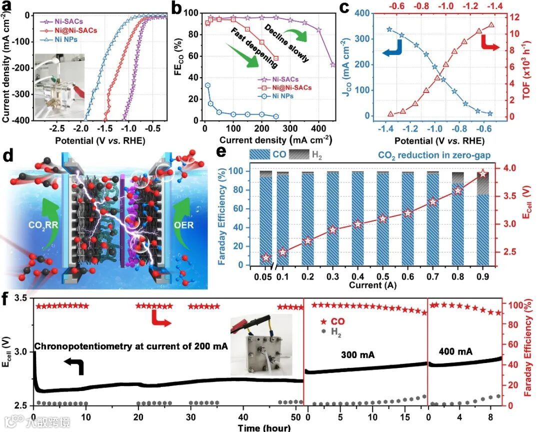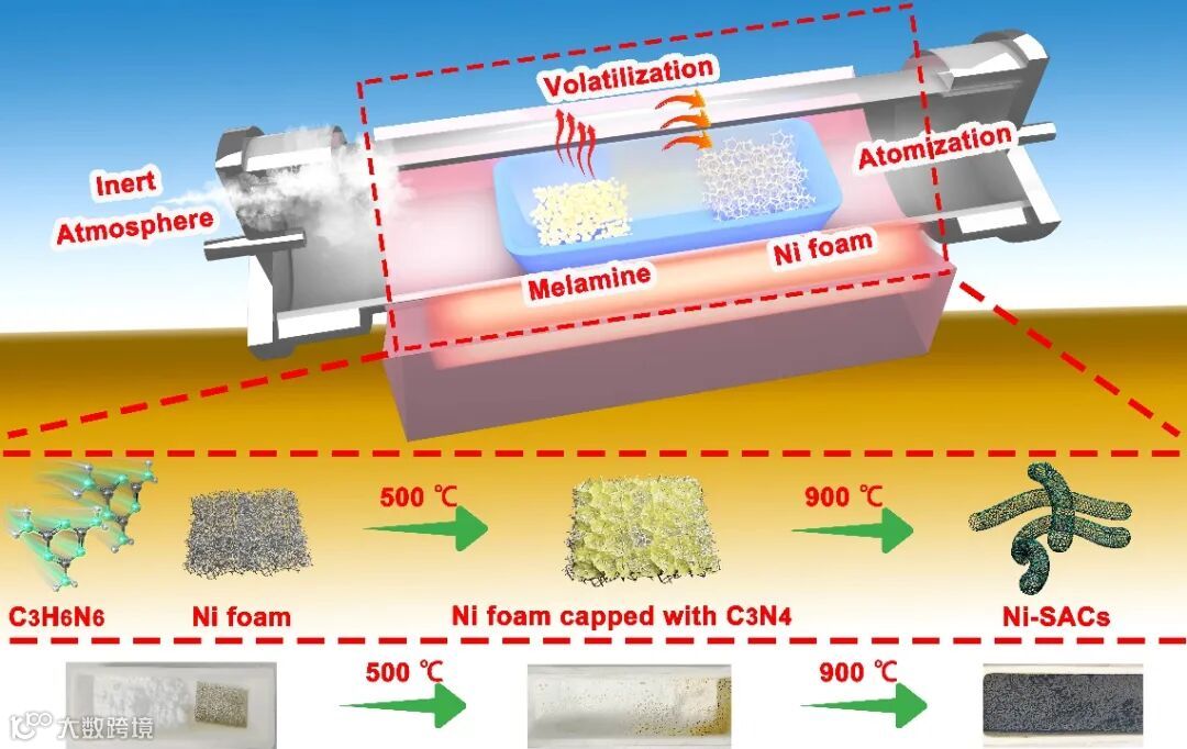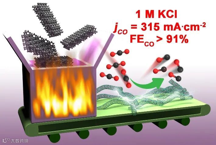 图1. 块体金属Ni变单原子及其在中性条件下的高CO2还原活性和选择性示意图。