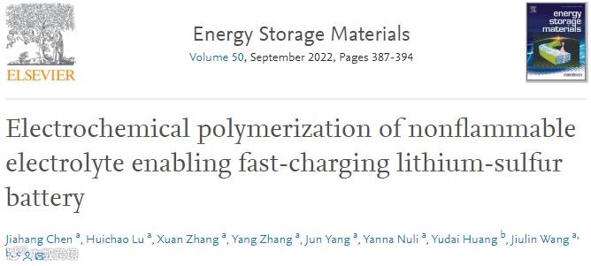 基于此,上海交通大学王久林课题组在Energy Storage Materials (影响因子:17.789) 上发表题为“Electrochemical polymerization of nonflammable electrolyte enabling fast-charging lithium-sulfur battery”的研究工作。