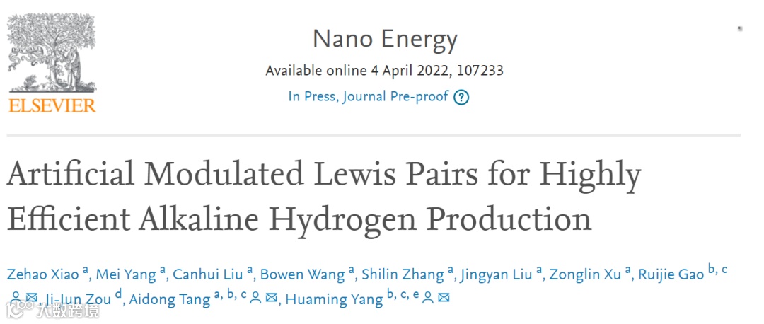 基于此,来自中南大学的唐爱东教授与中国地质大学(武汉)的高睿杰、杨华明教授合作,在国际能源知名期刊Nano Energy上发表题为“Artificial Modulated Lewis Pairs for Highly Efficient Alkaline Hydrogen Production”的研究文章。