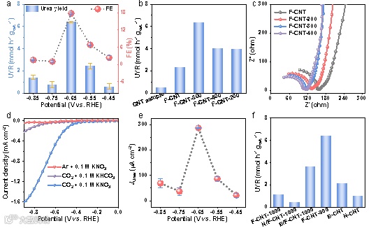要点二:F掺杂CNT电催化合成尿素的性能提升