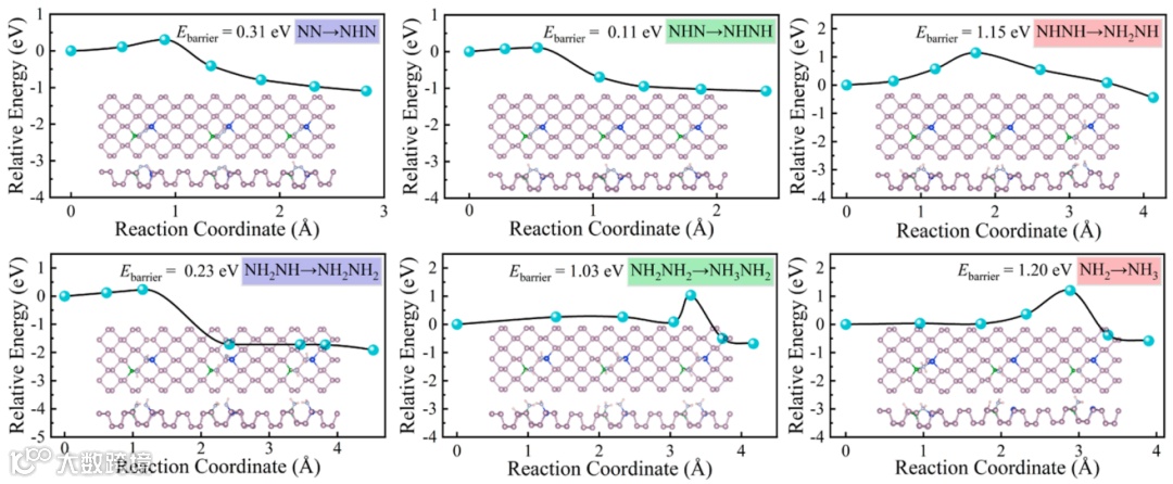 图 4. *N2 通过B–Si@BP1 表面氢化成 *NH3 的能垒图。