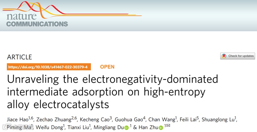 揭示高熵合金催化剂中金属电负性主导的中间体吸附特点