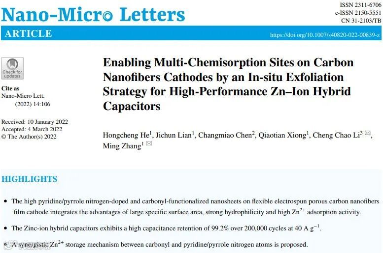 Hongcheng He, Jichun Lian, Changmiao Chen, Qiaotian Xiong, Cheng Chao Li*, and Ming Zhang*.Nano-Micro Letters 14, 106(2022).