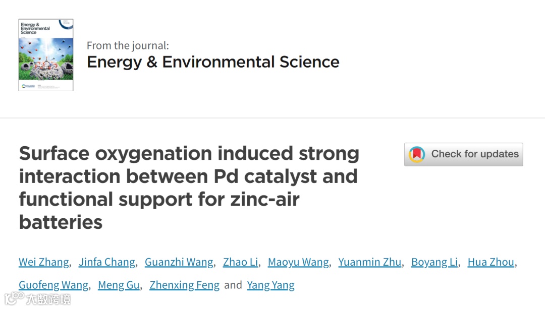 杨阳教授、冯振兴教授, EES:表面给氧促进Pd催化剂与功能基底强相互作用助力锌-空气电池