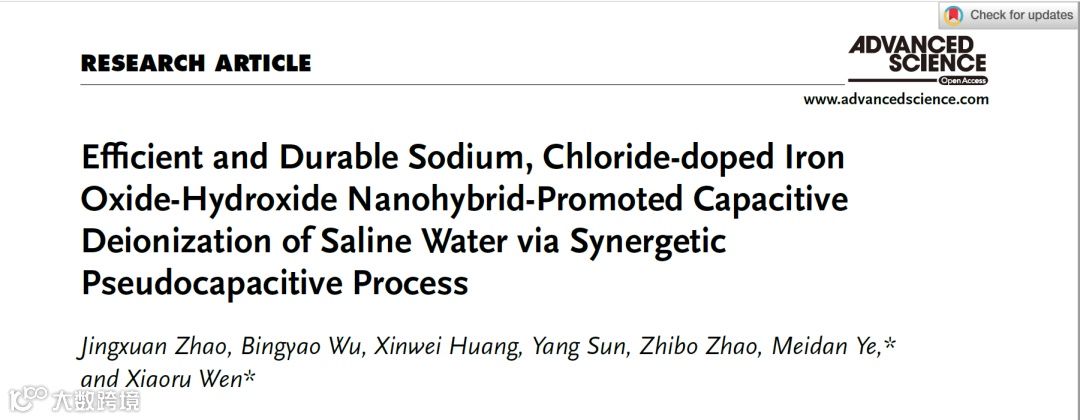 基于此,厦门大学物理科学与技术学院叶美丹教授和内蒙古大学化学化工学院温晓茹副教授合作在Advanced Science 期刊上发表了题为“Efficient and Durable Sodium, Chloride-doped Iron Oxide-Hydroxide Nanohybrid-Promoted Capacitive Deionization of Saline Water via Synergetic Pseudocapacitive Process”的文章。