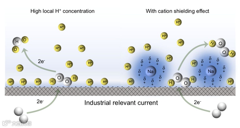 基于此,莱斯大学汪淏田教授、张晓(现香港理工大学),得克萨斯大学奥斯汀分校刘远越教授提出了一种阳离子调节界面工程方法,利用金属离子调控酸性环境中的氧还原反应界面,极大提高了强酸性介质中电催化氧还原合成H2O2的产率,实现了强酸性介质中H2O2在大电流密度下的生产,并且组装了新型的反应器,实现了长期稳定高效的H2O2 生产。