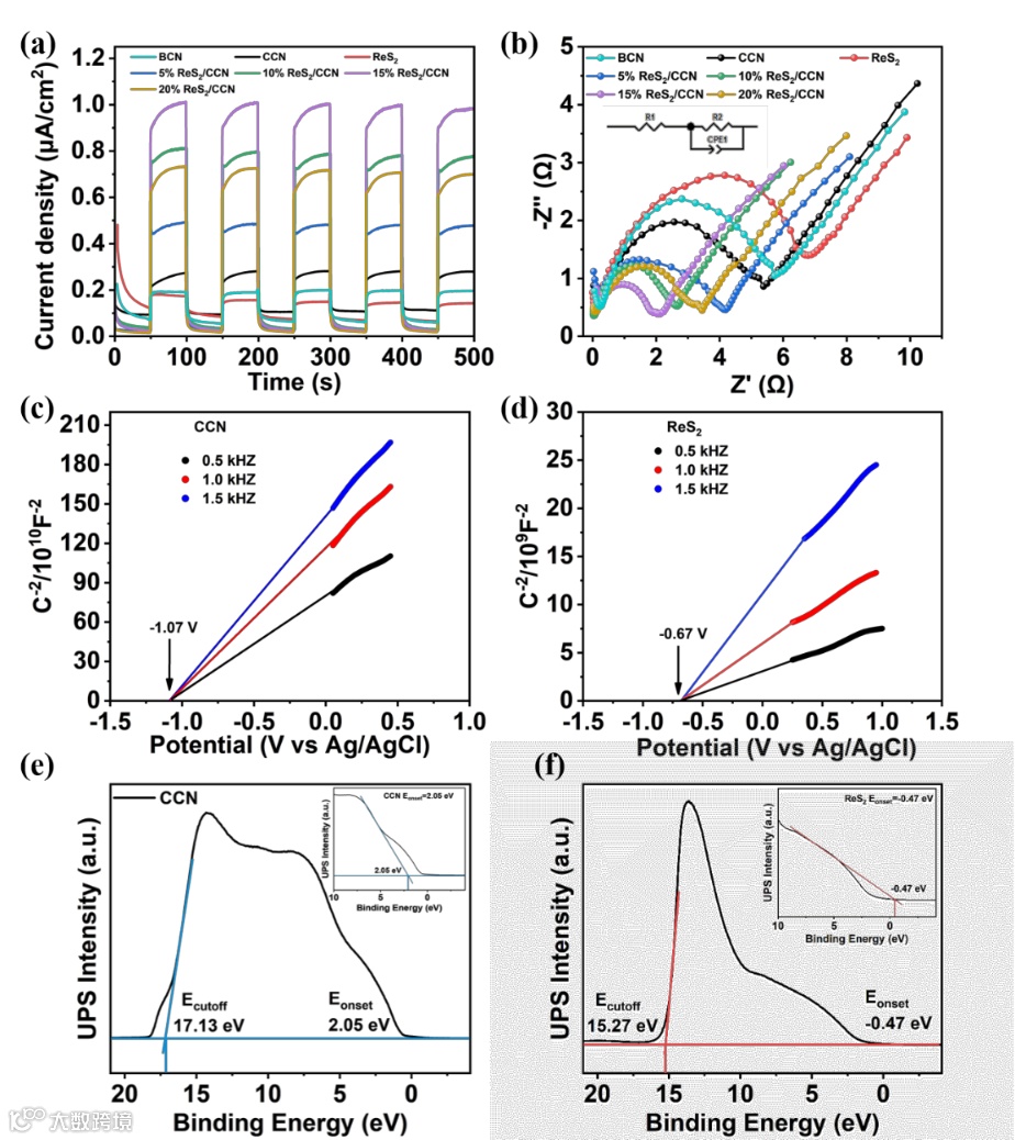 要点二:ReS2/CCN范德华异质结光学性质及光电化学性质表征