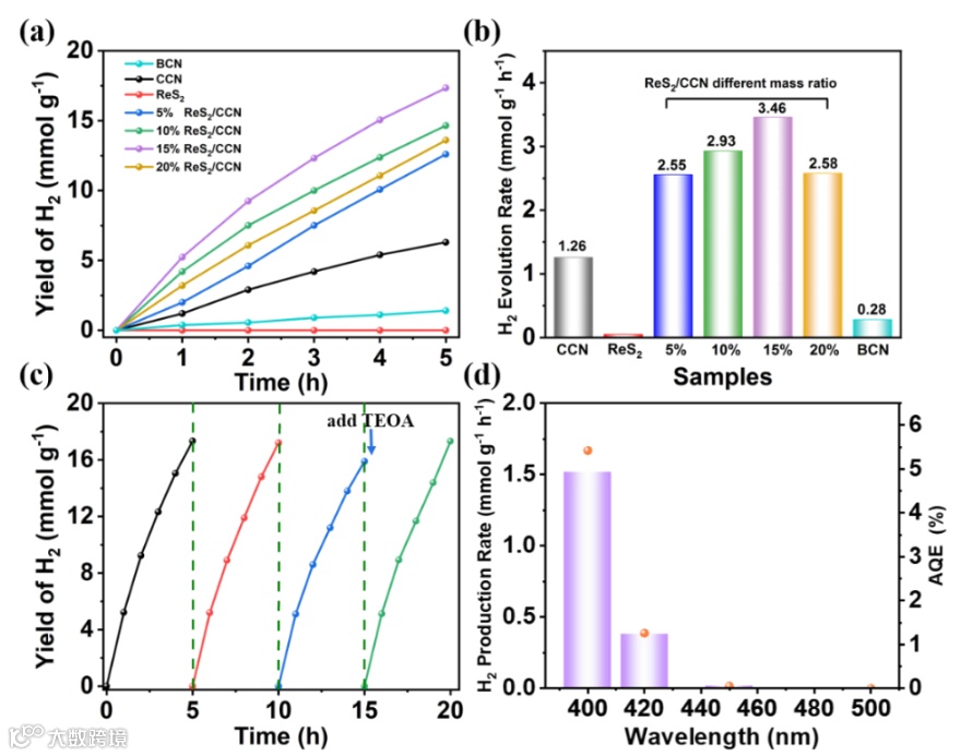 要点三:ReS2/CCN范德华异质结的光催化性能