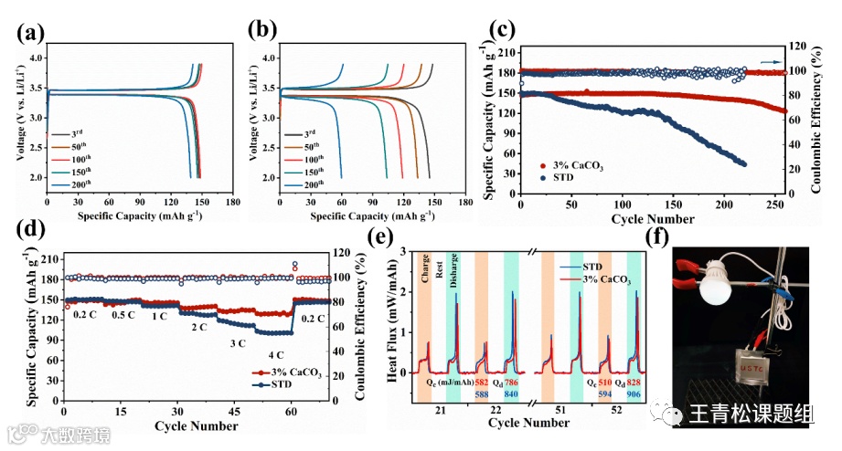 图7.碳酸钙添加剂对Li||LFP全电池性能的改善