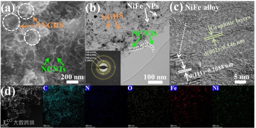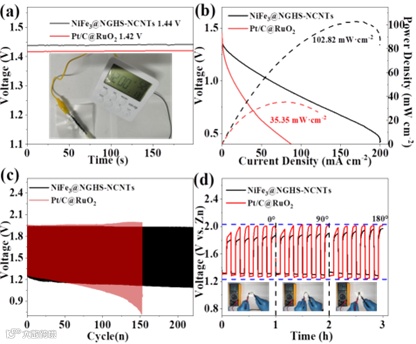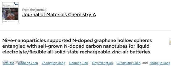 NiFe NPs负载缠绕自生长碳纳米管的N掺杂石墨烯中空小球在可充电液态/柔性全固态锌空气电池的应用