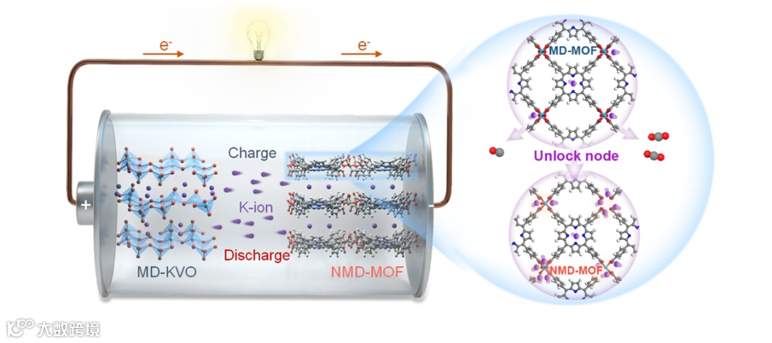 由于钾元素储量丰富(约为锂的850倍)且氧化还原电位较低(与锂接近),因此钾离子电池被视为下一代储能系统的重要组成之一,其电极材料的研发也备受关注。研究表明,由金属离子/团簇与有机配体通过共价键连接组成的金属有机骨架(MOF)是一类极具潜力的电极材料。但MOF节点处的原子通常为饱和配位,导致了较低的钾离子吸附能,从而极大地限制了其应用。