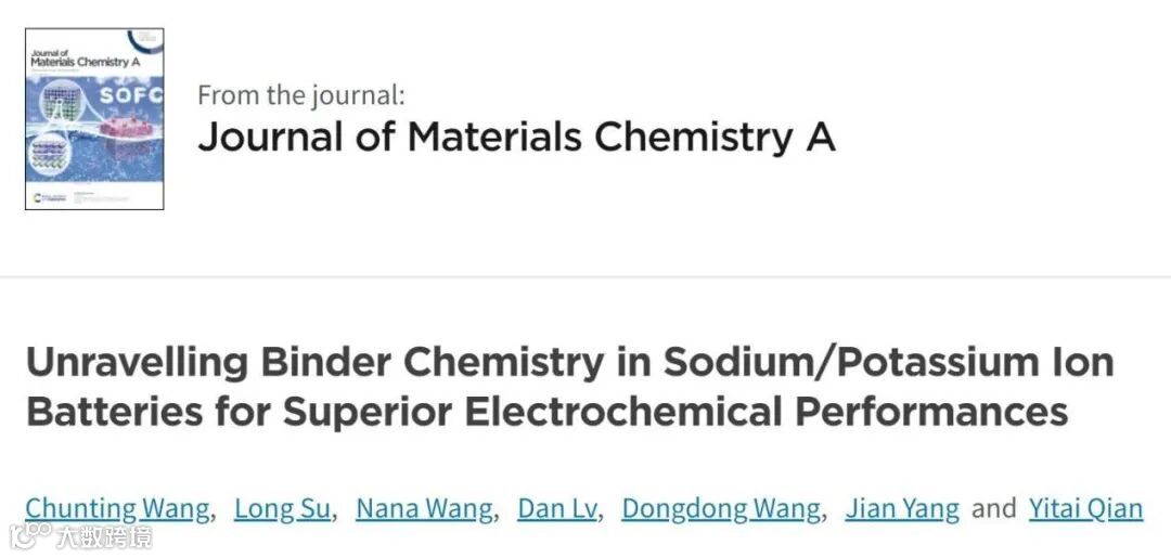 山东大学杨剑教授课题组JMCA:实现钠/钾离子电池优异电化学性能的粘结剂化学 科学材料站