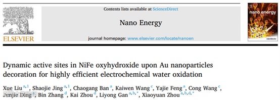 本文中,重庆大学的周小元课题组,在国际知名期刊Nano energy上发表题为“Dynamic active sites in NiFe oxyhydroxide upon Au nanoparticles decoration for highly efficient electrochemical water oxidation”的研究工作。该观点文章分析了Fe掺杂NiOOH体系中,Au纳米颗粒修饰带来的活性位点生成和演化过程。