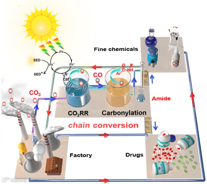 图1. 光催化 CO2RR 和羰基化反应的串联耦合。