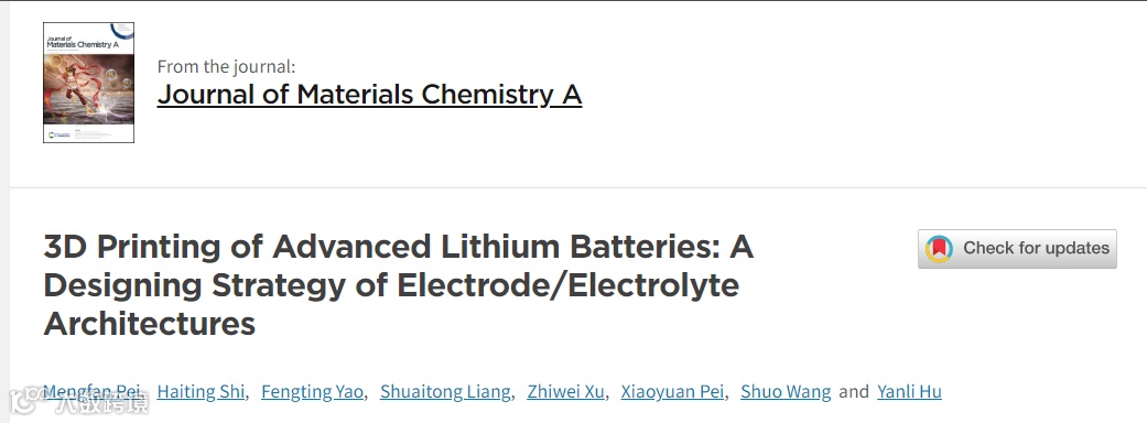 徐志伟教授,JMCA综述:先进锂电池的 3D 打印:电极/电解质架构的设计策略 科学材料站