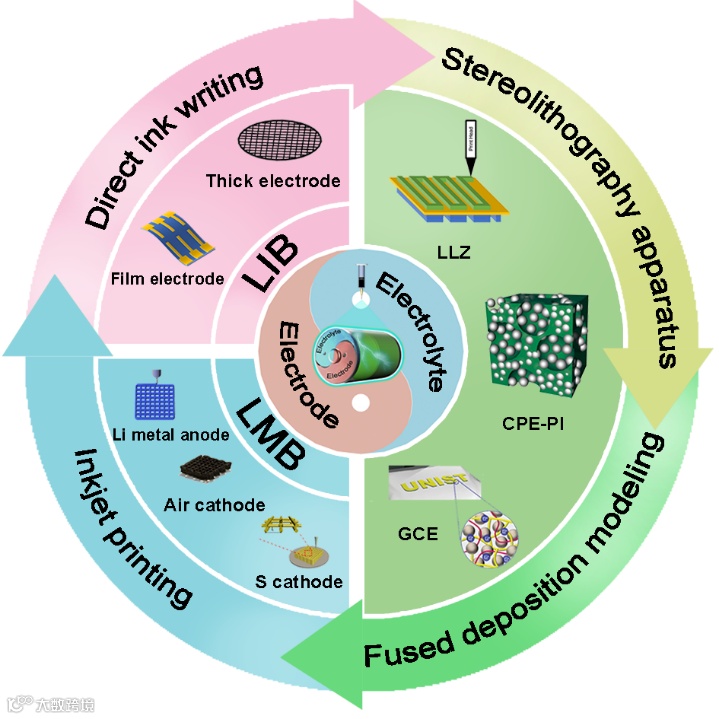 导读:该综述总结了近期几种常用的3D打印技术在锂电池电极和电解液上的研究进展,并且着重解释了使用不同的3D打印技术来制造锂电池电极和电解液背后的原因。