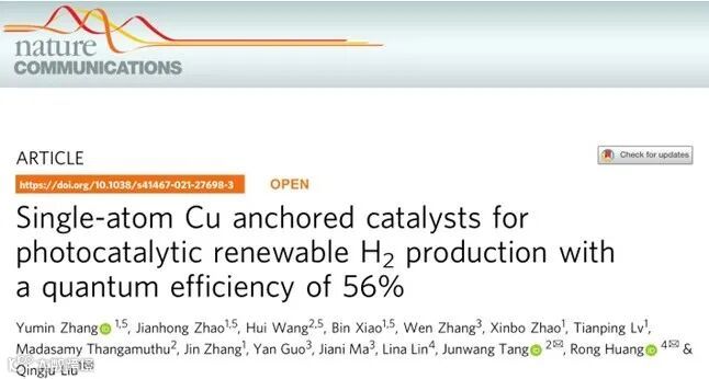 柳清菊教授、唐军旺教授, NC观点:光催化分解水产氢表观量子效率56%的CuSA-TiO2催化剂 科学材料站