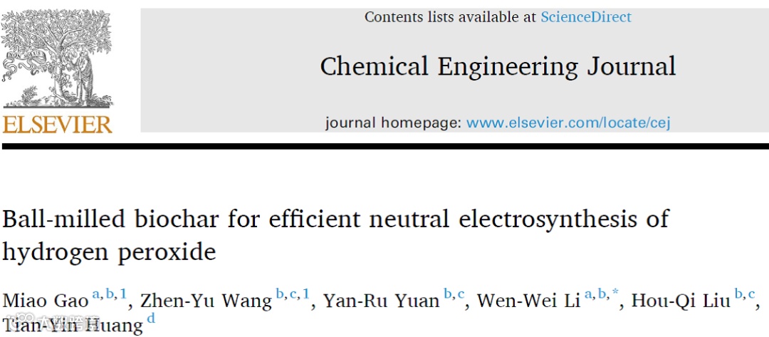 李文卫教授, CEJ论文:球磨生物炭用于中性条件下高效电合成过氧化氢 科学材料站