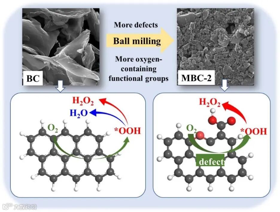 要点四:球磨调控生物炭H2O2电合成活性与选择性的作用机制