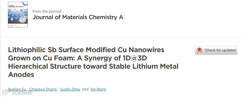 王新研究员、商超群特聘教授JMCA观点:在泡沫铜上生长亲锂Sb表面修饰的Cu纳米线:1D@3D分级结构对稳定锂金属负极的协同作用 科学材料站