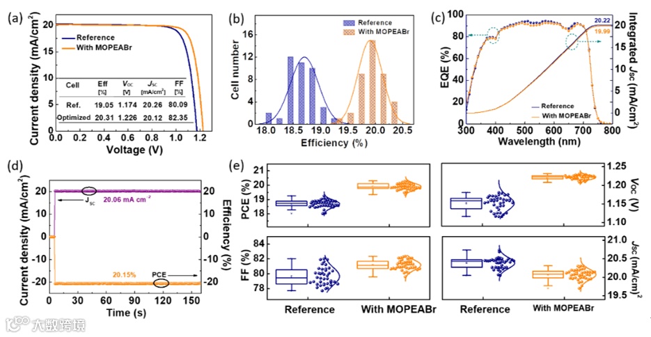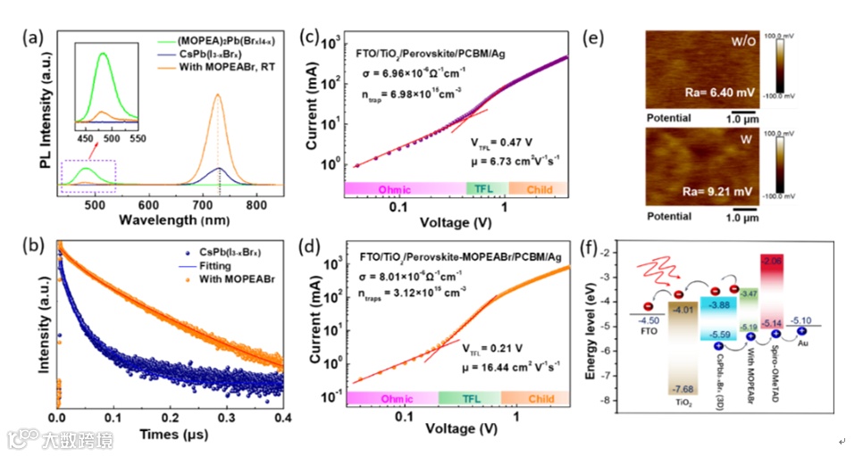 众所周知,苯环上的大π键是电子给体,与电子受体相互作用。考虑到苯的空间效应,静电相互作用更适合于与未完全配位的Pb2+相互作用,而不是通过配位键或离子键。因此,提高苯环的电子密度可以更有效抑制钙钛矿表面缺陷并使其钝化。
