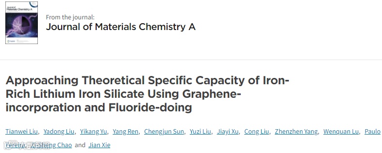 鉴于此,来自IUPUI的谢剑教授课题组,在国际知名期刊Journal of Materials Chemistry A上发表题为“Approaching Theoretical Specific Capacity of Iron-Rich Lithium Iron Silicate Using Graphene-incorporation and Fluoride-doping”的研究论文。