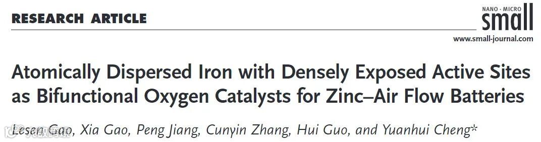 北京化工大学程元徽课题组《Small》:具有密集活性位点的原子分散铁作为锌-空气液流电池的双功能氧催化剂