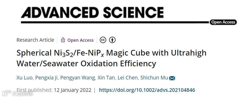 基于此,来自武汉理工大学的木士春教授团队在国际知名期刊Advanced Science 上发表题为“Spherical Ni3S2/Fe-NiPx Magic Cube with Ultrahigh Water/Seawater Oxidation Efficiency”的研究文章。
