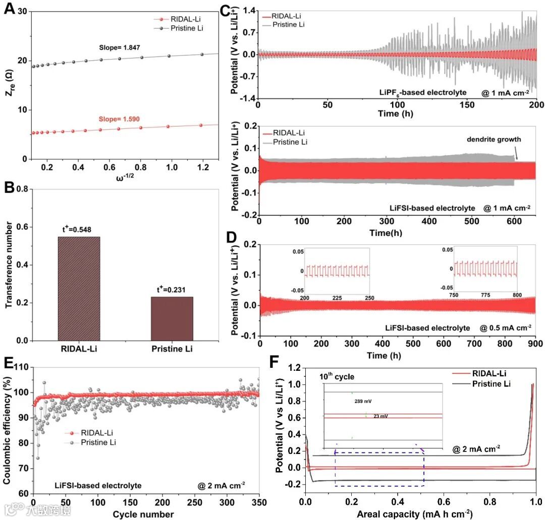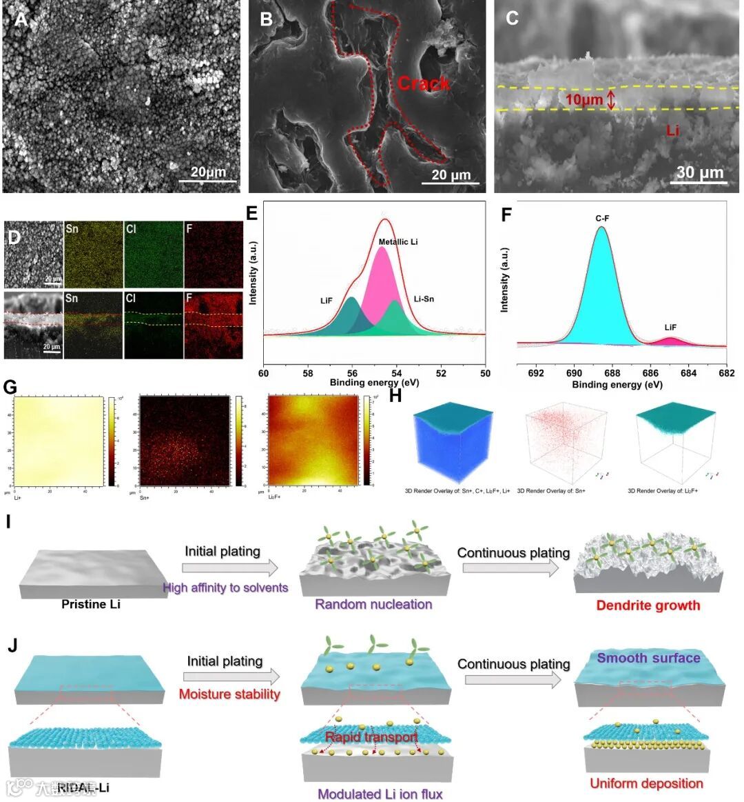 图5. RIDAL-Li电化学循环后的电极界面性质及对锂金属电极中锂离子动力学的调控机理