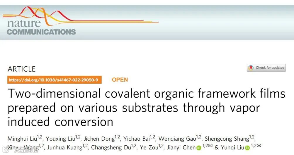 基于此,来自中国科学院化学研究所的陈建毅研究员和刘云圻院士团队,在国际知名期刊Nature Communications上发表题为“Two-dimensional covalent organic framework films prepared on various substrates through vapor induced conversion”的研究文章。