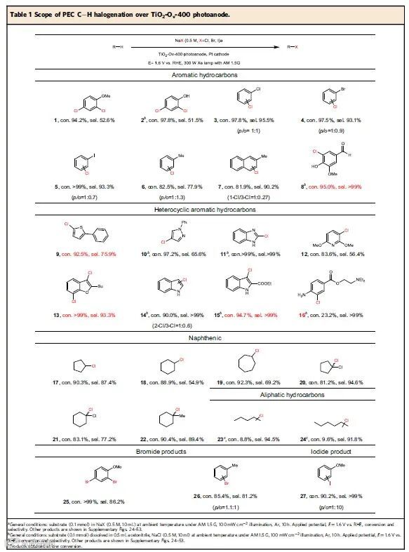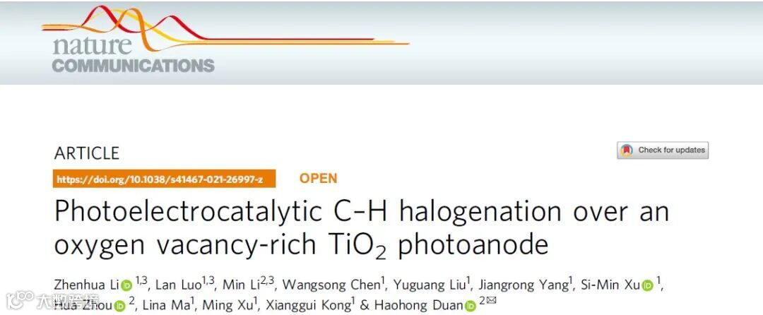 鉴于此,清华大学段昊泓副教授和北京化工大学栗振华副教授等人在国际知名期刊Nature Communications上发表题为”Photoelectrocatalytic C–H halogenation over an oxygen vacancy-rich TiO2 photoanode”的文章。