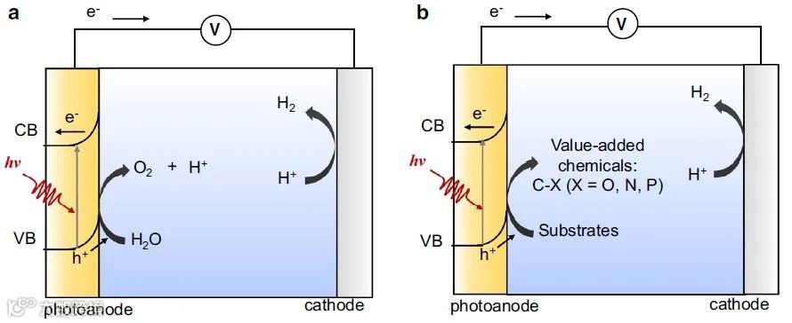 的重要研究方向之一。然而,传统PEC分解水产氢效率仍受阳极析氧反应(OER)动力学缓慢的制约,并且产生的氧气附加值较低。将阳极OER过程替换为重要的有机氧化反应不仅可以实现高值化学品的绿色合成,而且能够提升阴极产氢效率,为PEC技术的实用化提供了新途径。