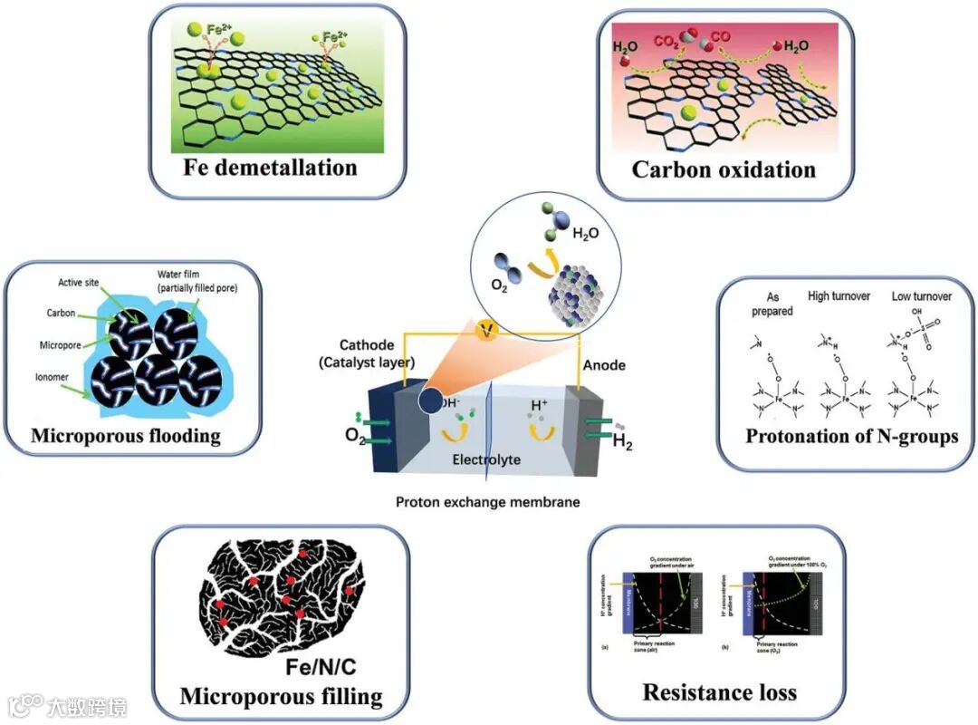 由于Fe-N-C催化剂催化的ORR反应过程和中间产物的复杂性,确切的衰减机制尚不清楚,阻碍了Fe-N-C催化剂稳定性的进一步提高。 -