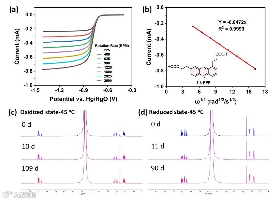图2. 1,8-PFP化合物RDE测试及氧化/还原态高温稳定性测试