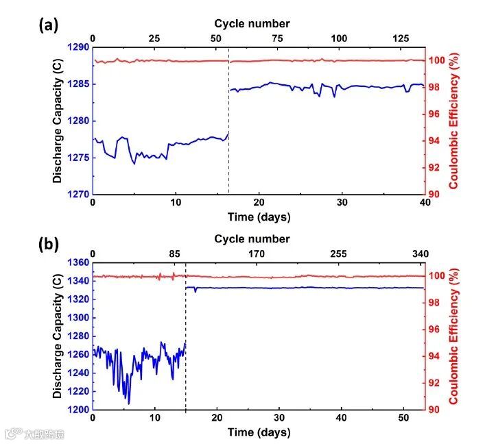 图3. 1.0 M 1,8-PFP(pH 14)(a)常温 (b)高温电池循环测试