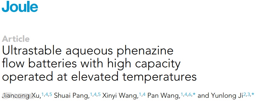 综上所述,西湖大学王盼和国科大杭州高等研究院季云龙合作发展的丙酸取代的新型水溶性吩嗪衍生物(PFP),在常温及高温水系有机液流电池体系下展现出了极高的长时循环稳定性及容量保持率,表明了PFP系列化合物作为水系有机液流电池储能材料应用于极端环境,如高温及强碱性环境条件下具有极大潜力。