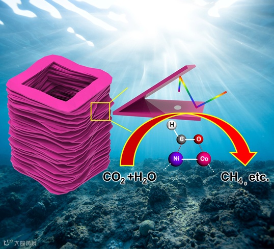 尽管许多传统策略被应用于光催化还原CO2制CH4,主要问题仍然是集成高转化率和高选择性于一体。本工作设计合成一种磷掺杂的镍钴双金属中空千层糕结构材料,提出通过生成高稳定的Co-O-C-Ni中间体可以降低CH4生成反应的热力学能垒,并有效促进其高选择性生成。