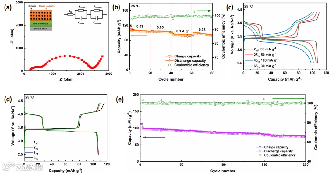 图4 全固态钠金属电池室温电化学性能。