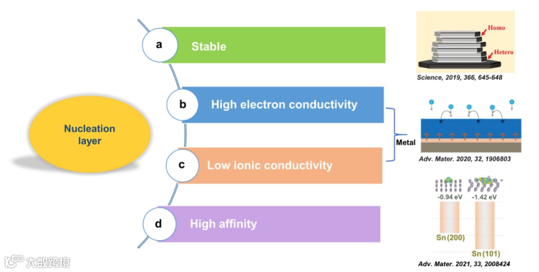 Fig. 2 Criteria for building a high-performance nucleation layer on the Zn electrode surface.